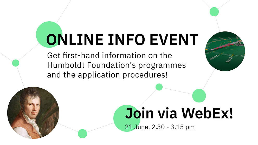 If you would like to find out more about the Humboldt Foundation's research award programmes and the Feodor Lynen Research Fellowship Programme, come to the online event and get first-hand information on the programmes and the application procedure!