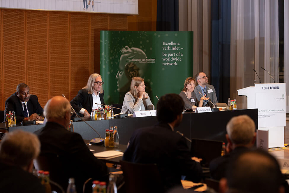 The participants discussed the effects global academic networks like the Humboldt Foundation network have on science and progress and, consequently, on nations and their societies. Caroline S. Wagner presented her data and impact analyses which suggest that international research cooperation and government funding for excellent researchers from abroad have a positive impact on science in the respective countries. “Open countries have strong science” summarises the findings of her work. The experts also discussed how academic networks have to be designed in today’s digital world so that they are not only productive but also inclusive.