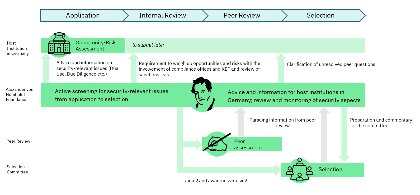 - In the event of ethical or security-relevant concerns, the Humboldt Foundation reserves the right to forward applications it has received to the host institutions requesting them to consult the Ethics Committees and Compliance Offices at their institutions before a funding decision is made.