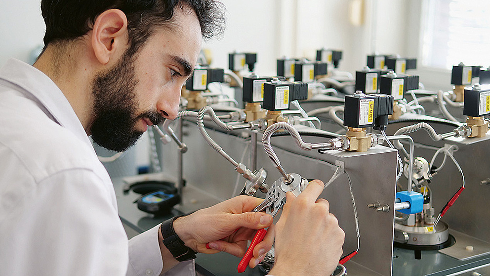Verseux specialised in astrobiology, which is the study of the conditions and possible forms of life in space. His doctorate contributed to the BIOMEX experiment: between 2014 and 2016 on board the International Space Station ISS, hundreds of samples of various bacteria, algae, lichens and fungi were subjected to the conditions present in space and on Mars. Amongst the most robust microorganisms were the bacteria Verseux was studying: cyanobacteria, whose Anabaena genus is now swimming around in the Atmos vessels in Bremen.