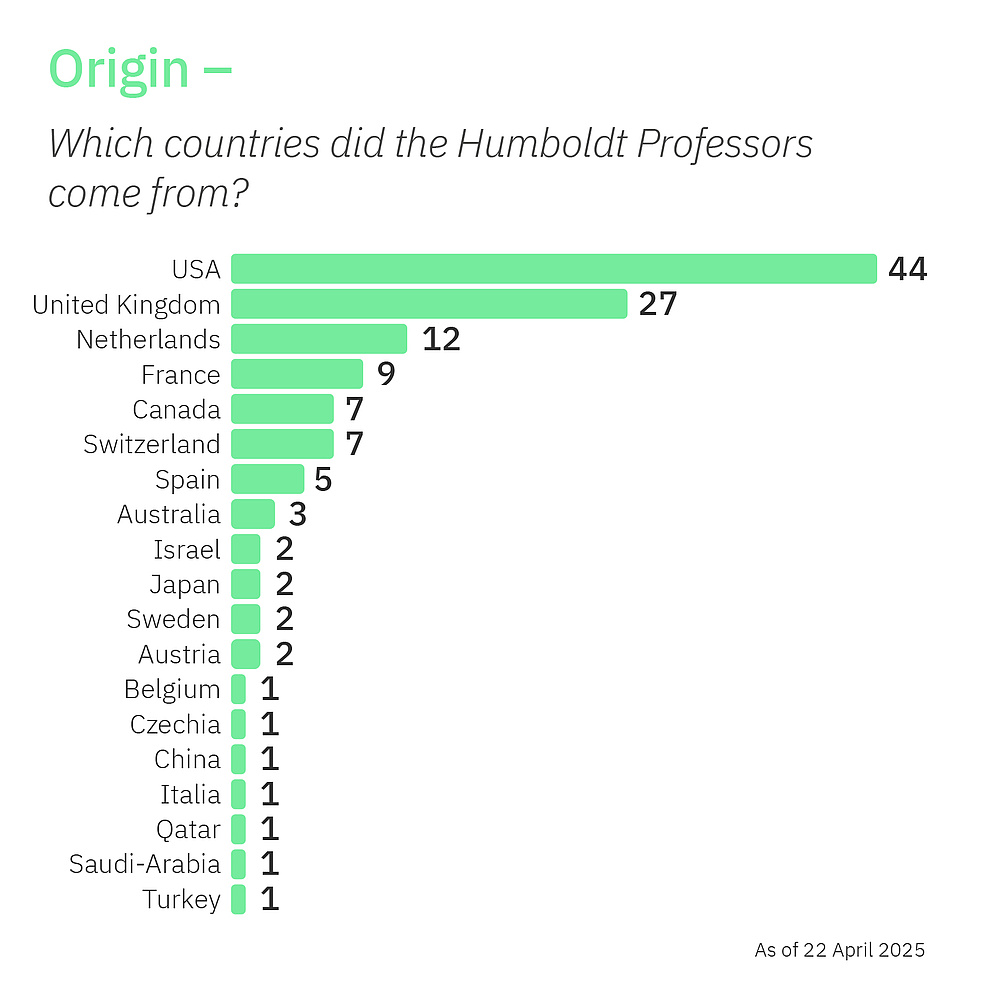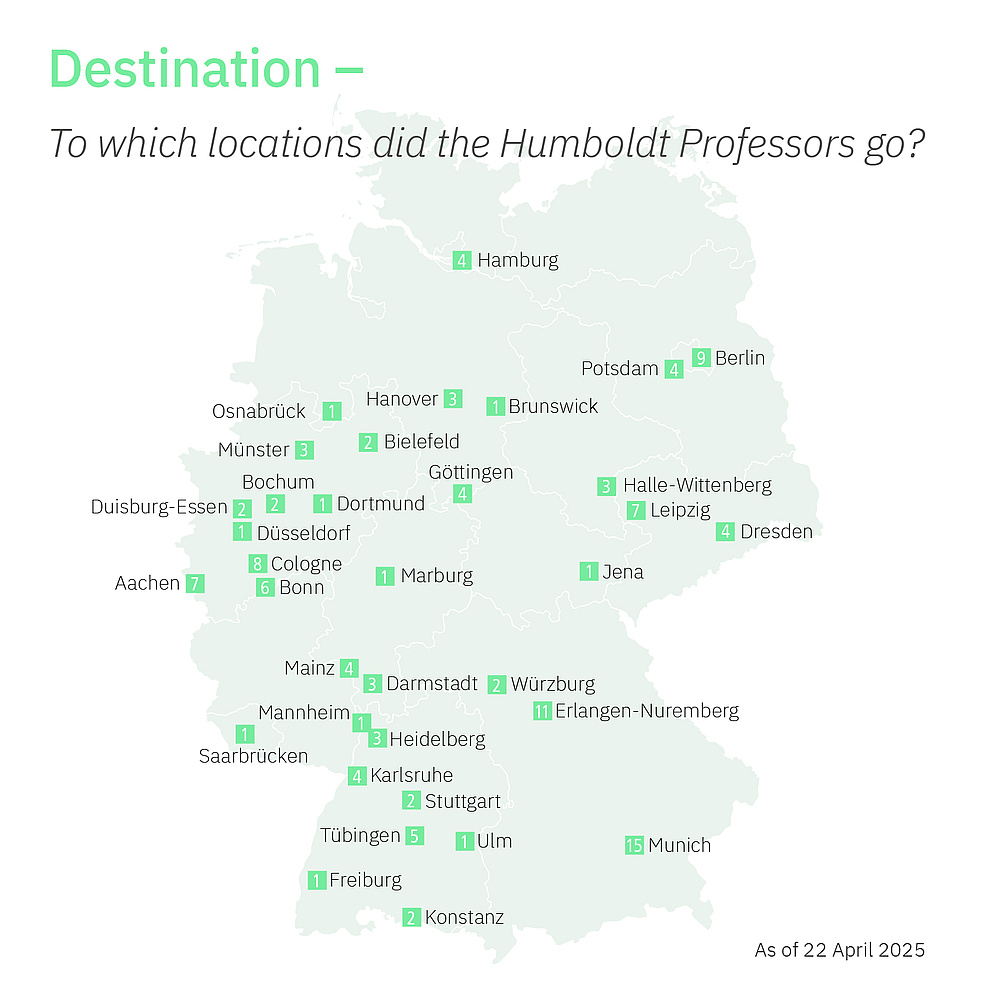 Each year, up to ten Humboldt Professorships can be awarded to researchers from all disciplines. From 2020 to 2024, up to 30 additional Humboldt Professorships in the field of Artificial Intelligence, which can also be designed to investigate the social, legal and ethical aspects of Artificial Intelligence, could be awarded.