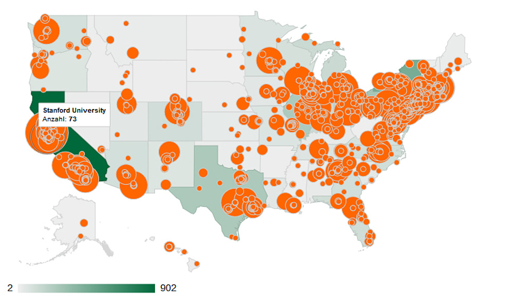 The recently published Humboldt Geography of Knowledge shows the countries and institutions from which the greatest number of applicants and nominees selected by the Humboldt Foundation have come from in the last five years and where Humboldt alumni are conducting research today.