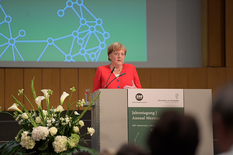 Chancellor Angela Merkel opened the meeting yesterday and presented the Humboldt Alumni Awards which the Foundation uses to single out innovative networking ideas from Humboldtians in other countries. Merkel stressed the importance of academic and scientific freedom and multilateral cooperation and underscored the contribution the Humboldt Foundation makes to this through its international collaboration. “Today, networks of researchers serve as lifelines in the science world and are part of globalisation that is practised and purposefully shaped by stakeholders. The Humboldt network with its 30,000 members around the globe particularly stands out in this connection”, said Merkel. The Humboldt Foundation builds not only bridges within the scientific and academic community, but also bridges between societies and cultures, she added.