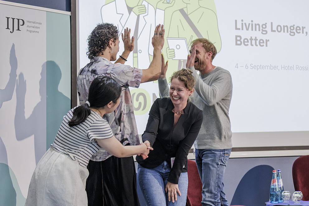 Interdisciplinary work requires trust, a safe space and people who make cooperation possible. When science meets media, it is not only about sharing content but also different working methods, styles and principles. An authentic dialogue is only possible when people discuss the how as well as the what. And the best way of addressing these issues is in a joint project. Guided by mentors from the international media, Jens Radü (editor-in-chief, DER SPIEGEL), Damian Carrington (environmental editor, The Guardian) und Gemma Terés Arilla (director taz Panter Foundation), the participants developed innovative project ideas on longevity in science-media tandems. The four best ideas were awarded funding of €2000. In addition, a peer prize of €500 was granted.