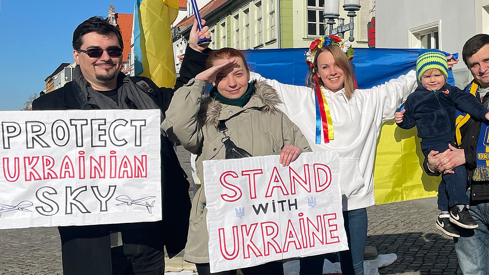 Dmytro Leontyev: My wife and I are in safety here in Germany but that does not mean that we are calm. The situation reached a point that we couldn’t continue constantly watching the news – we would have gone crazy. So we started organising protests against the war and activities to signal our solidarity with Ukraine. The alliance Greifswald für alle (Greifswald for all) is also involved in these activities. The fourth gathering was held on Wednesday on the market square in Greifswald. The next one will be held on Saturday. I gave a speech there on Tuesday because I’m a professor and I try to explain the political situation and background to people. The mayor was also there. Together with other people from Greifswald, from Ukraine and, incidentally, Russia as well, we are currently collecting relief supplies that will be transported to the region.