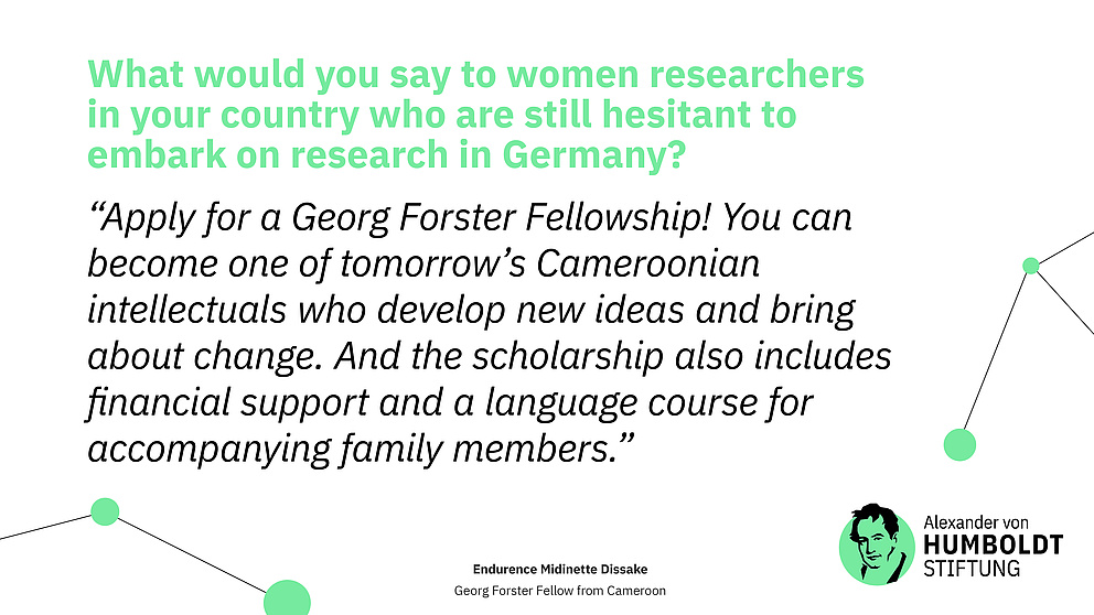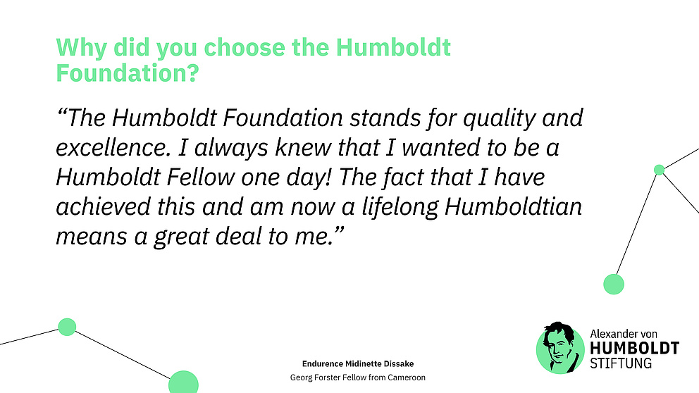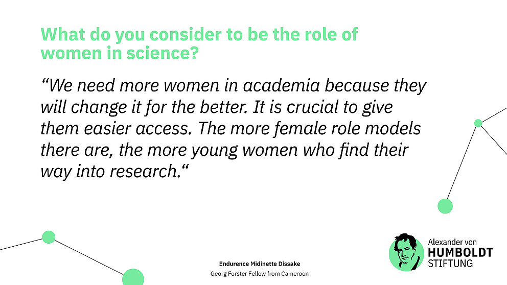 Dissake had to fight for her career in academia, too. “If my mother had had her way, I would now be a housewife with children.” The only support she received was from her mentor and linguistic professor, Gratien Atindogbéan, at the University of Buea. “He was also the one who told me about the excellent research conditions in Germany and about the Humboldt Foundation. To become a Humboldt Fellow one day was my main goal. The fact I have achieved it and am now a lifelong Humboldtian means a great deal to me.” She wants to encourage other women to go into research because academia needs to be more diverse. This requires re-thinking, for her, as well. “I want African research not to be fundamentally called into question and for European and US researchers to take our work seriously.”