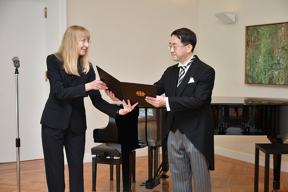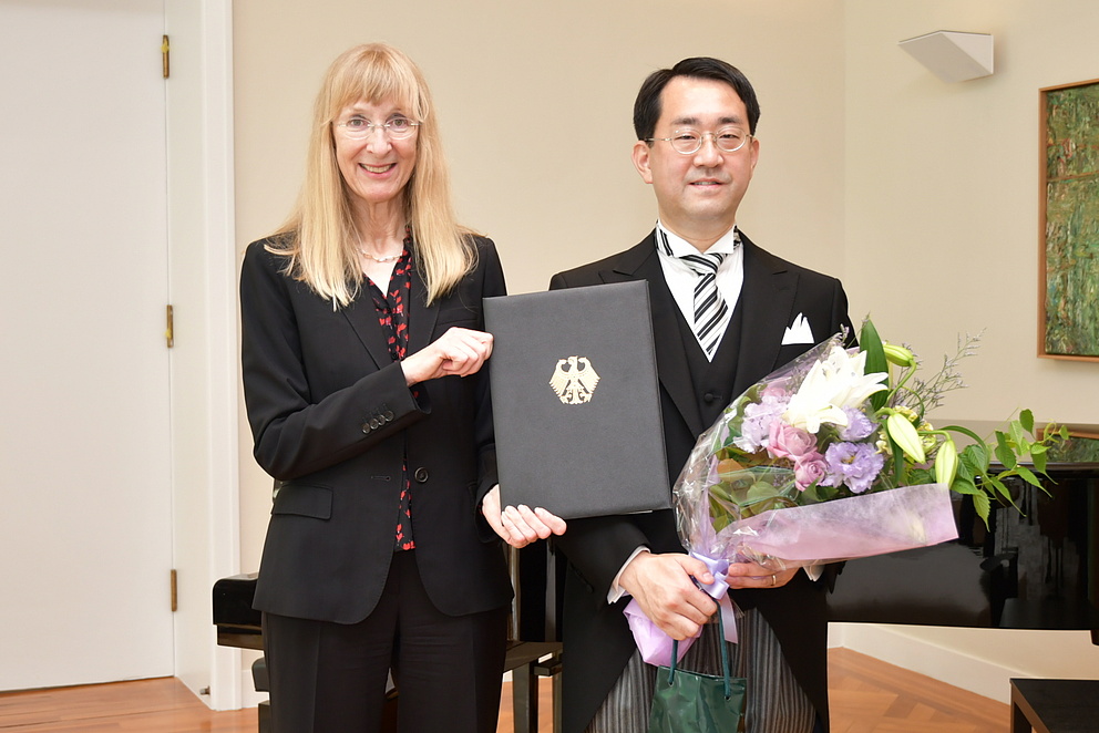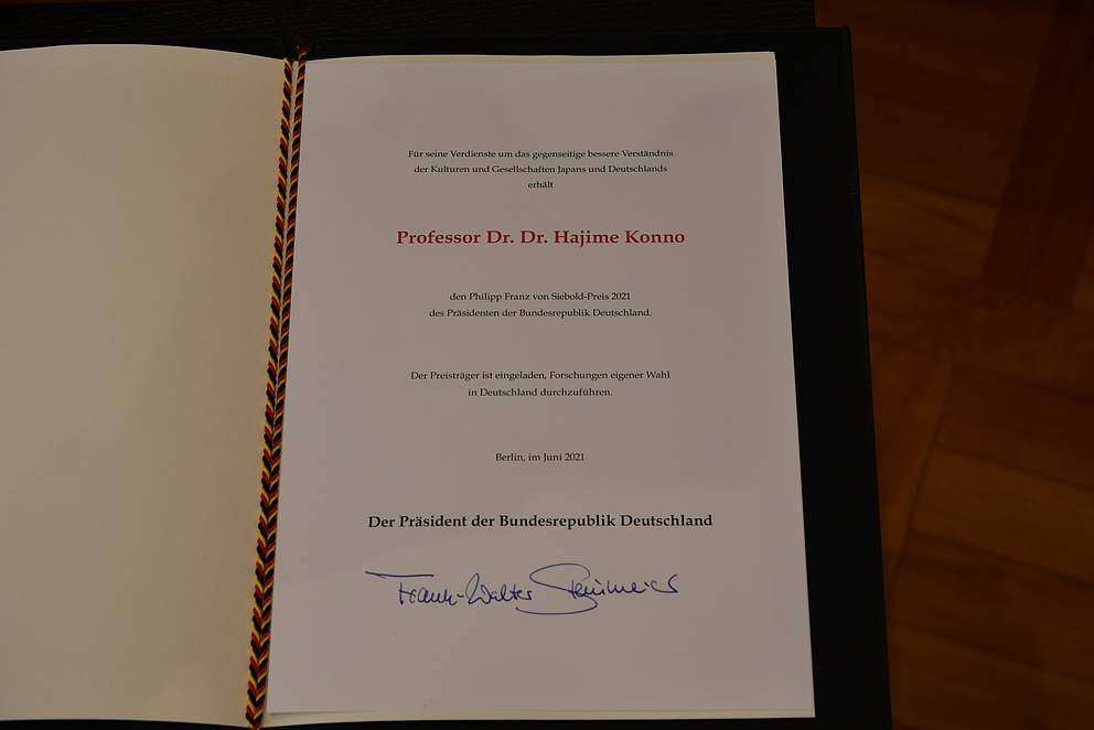 Traditionally, Germany’s federal president presents the Philipp Franz von Siebold Award to the recipient in Berlin during the Humboldt Foundation’s annual meeting. However, since the annual meeting has been held using a digital format this year due to the coronavirus pandemic, the German ambassador in Japan, Ina Lepel, has presented the award to Mr Konno on 27 July.