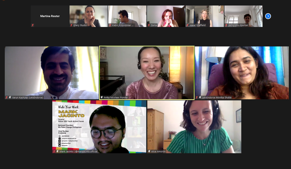 To add some optimism to the unavoidably somewhat sombre overall topic of sustainability and social justice, we also heard some great real-life stories where social innovators have taken upon themselves the task of finding solutions. Monika Shukla and Varun Kashyap, Humboldt German Chancellor Fellows, introduced a truly inspirational initiative from India called Let’s Endorse: a large community of social innovators who solve social issues sustainably and effectively. It’s a marketplace and a technology platform with over 500 social innovators from 40 countries across the globe, brought into contact with a web of over 2,000 NGOs from all over India, plus corporations, philanthropists, volunteers and the government. They are ensuring the livelihoods of unemployed or underemployed low-income households, helping them to become job creators, instead of job-seekers, which has become especially important in the context of massive reverse migration and jobs slowdown aggravated by the COVID-19 pandemic.