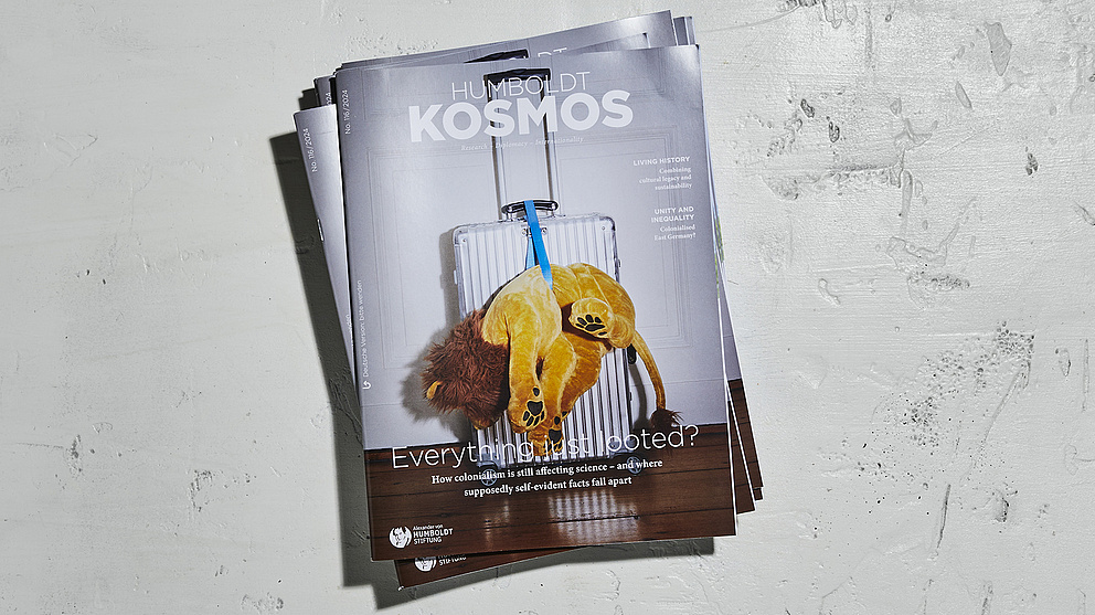 The magazine Humboldt Kosmos is published in German and English and has a print run of 44,000 copies. It reaches the Foundation’s network of more than 30,000 sponsorship recipients in over 140 countries worldwide as well as many collaborative partners in Germany. To promote world-spanning research collaborations on an even playing field in order to address global challenges with local expertise is also one of the objectives of the Humboldt Foundation’s new Strategy.