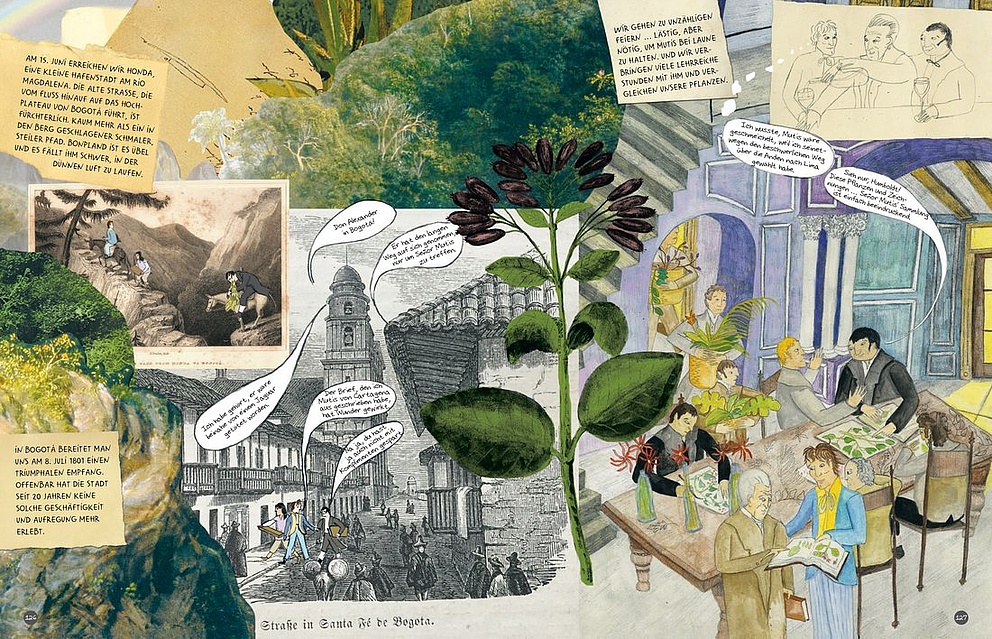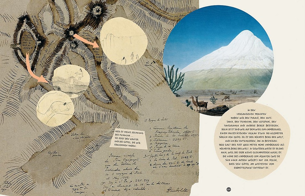 Man konnte die Tagebücher ja vorher schon in Abschriften lesen, aber, seit 2014 die ersten Seiten online sind, kann man sie jetzt auch im Original sehen – handschriftlich und mit seinen Zeichnungen. Da sieht man – und das ist der Grund, warum ich „Die Abenteuer des Alexander von Humboldt“ als illustriertes Buch machen wollte –, dass Humboldt eine ganz starke künstlerische Seite hatte. Er wird ja gern als der Empiriker gesehen, der mit seinen 42 Messgeräten durch Südamerika gejagt ist. Aber das ist völlig falsch. Humboldt ist jemand, der immer wieder sagt: Wir müssen unsere Fantasie und unser Gefühl benutzen, um die Natur zu verstehen. In seinen Tagebüchern sieht man genau das: Hunderte von Skizzen, Tiere, Pflanzen, Berechnungen, Vulkanprofile, Karten. Das sind nie einfache, beschriebene Seiten, Humboldt klebt auch immer wieder neue Papierfetzen darüber, schreibt dazu, zeichnet noch etwas. Das sind mehrschichtige Collagen seiner Beobachtungen und Gedanken. Ein Zeugnis eines rastlosen Geistes, der immer wieder neue Ideen hat und nie nur linear in eine Richtung denkt, sondern immer in alle Richtungen gleichzeitig.