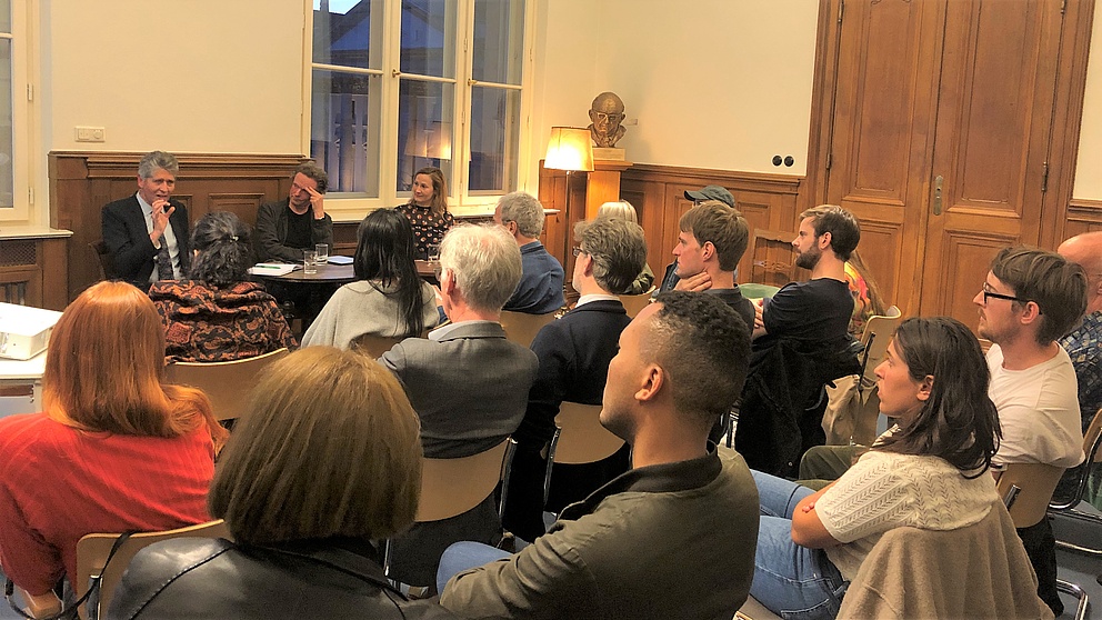 Das dritte Panel der Veranstaltung ging der Frage nach, wie frei menschliches Handeln sein kann. Der Neurowissenschaftler Patrick Haggard (University College London) und der Philosoph Michael Pauen (Humboldt-Universität zu Berlin) erklärten, wie unsere Konzepte von Rationalität und Autonomie entstanden sind und wie sich Erkenntnisse aus der Hirnforschung mit philosophischen Annahmen in Einklang bringen lassen. Der interdisziplinäre Dialog wurde moderiert von Judith Wellen (Leiterin der Abteilung Strategie und Außenbeziehungen, Humboldt-Stiftung). Nach welchen Maßstäben beurteilen wir, wann eine Handlung als frei bezeichnet wird? Michael Pauen erörterte die Bedingungen von Willensfreiheit. Im Gespräch mit Patrick Haggard wurde dann deutlich, dass bereits bei der Klärung von Begrifflichkeiten interessante Reibungspunkte zwischen den Disziplinen entstehen können. Während Pauen „Selbstbestimmung“ dem Begriff „Freiheit“ vorzieht, stellt sich für die neurowissenschaftliche Forschung die Frage, wie sich das „Selbst“ messen lässt. Zugleich setzt Freiwilligkeit eine Entscheidungsoffenheit voraus. Doch wie lässt sich dies abbilden? Denn, so betonte Neurowissenschaftler Haggard, nicht das, was man getan haben könnte, ist empirisch fassbar, sondern allein die konkrete Aktion. Ob und wie die „Wahl der Entscheidung“ als Maßstab und Messgröße des freien Willens greifbar ist, führte zu spannenden Diskussionen mit dem Publikum.