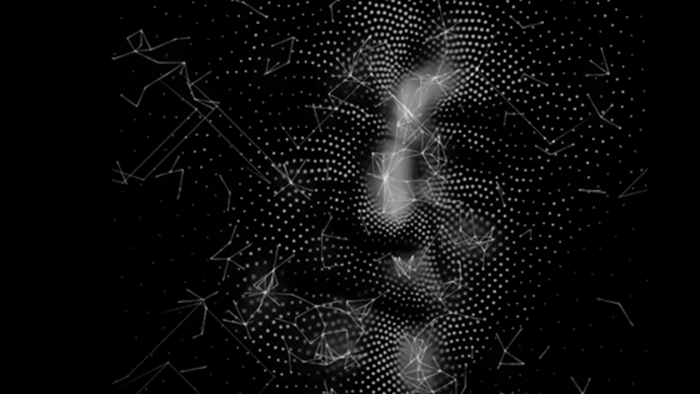Das Prinzip der Rasterung wird ins Akustische übertragen – und in der KI-erzeugten Animation direkt wieder ins Visuelle zurückgeführt: In Form von grafischen Interpretationen und Vernetzungen, die das Authentische seines Porträts dekonstruieren und in neue Möglichkeiten überführen.