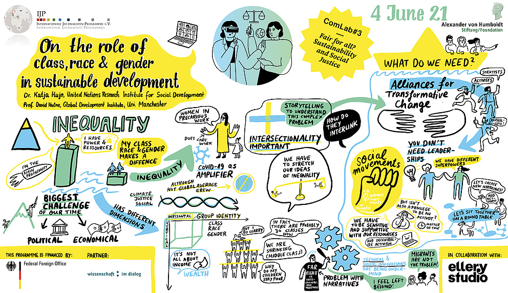ComLab#3: „Fair für alle? Nachhaltigkeit und soziale Gerechtigkeit“ fand am 4./5. sowie am 11./12. Juni 2021 statt. Am ersten Tag drehten sich die hitzigsten Diskussionen um die Unzulänglichkeiten der modernen Wissenschaft. Als die größten Barrieren für das breitere Publikum wurden der kostspielige Zugang zu akademischen Publikationen sowie der Mangel an effizienten Storytelling-Methoden genannt. ComLab knüpft an den letztgenannten Aspekt an und bietet in genau diesem Bereich Unterstützung: Den teilnehmenden Forschenden werden persönliche Kommunikationsexpert*innen zur Seite gestellt, die offen für Inspiration und neue Geschichten ist.