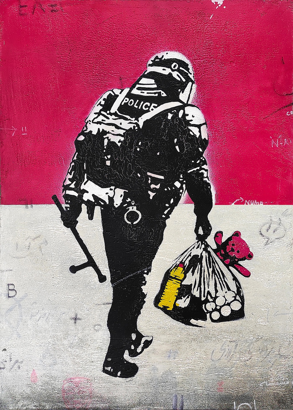 Kunstwerk von Amir Samavat zu den Protesten im Iran (70 x 100 cm, Mischtechnik, flexibler Zement auf Leinwand)