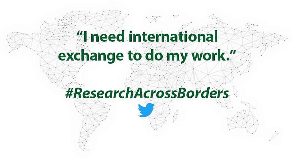 Daneben sammelte die Humboldt-Stiftung unter dem Hashtag #ResearchAcrossBorders (Twitter) Statements, die für internationale Zusammenarbeit in der Forschung, für Wissenschaftsaustausch, Vertrauen und Offenheit werben. Denn wir sind überzeugt: Globale Probleme können nur gemeinsam gelöst werden. In der Krise und in der Zukunft.