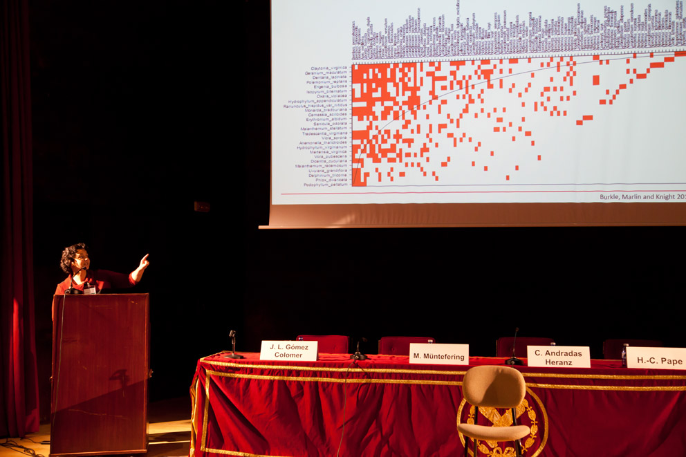 „Humboldt ist Weltwissenschaftler und Weltbürger, dessen Wirken für unseren heutigen Umgang der Menschen miteinander und mit der Natur immer noch Leitbild ist. Seine Ansichten bestimmten Wissen, nicht Vorurteile“, betonte Michelle Müntefering, Staatsministerin im Auswärtigen Amt, in ihrem Grußwort vor knapp 300 Alumni und Nachwuchswissenschaftlern. Die Wissenschaft sei in Europa eine zentrale Kraft der Einigung, weil sie um den besten Weg ringe und auch auf die Kraft der Argumente und nicht auf das Recht des Stärkeren setze, so Müntefering, als sie am Abend des 11. April gemeinsam mit Hans-Christian Pape, dem Präsidenten der Alexander von Humboldt-Stiftung, die Konferenz in Madrid eröffnete. Hans-Christian Pape betonte die Rolle von internationalen Netzwerken wie das der Humboldtianer, um in Humboldts Geist eine grenzenlose Forschung zu gewährleisten. „Denn gute und erfolgreiche Wissenschaft entsteht in der transnationalen Zusammenarbeit“, sagte der Präsident der Humboldt-Stiftung zur Eröffnung des Kolloquiums.