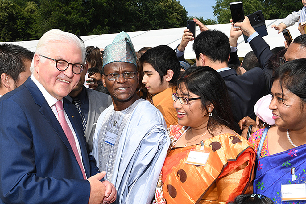 Zur Jahrestagung der Humboldt-Stiftung empfing Bundespräsident Frank-Walter Steinmeier Ende Juni fast 600 Geförderte der Stiftung aus aller Welt und deren Familien im Park von Schloss Bellevue in Berlin. „Es ist schön, dass Sie alle nach Deutschland gekommen sind, in unser weltoffenes Land, das ein Land der Wissenschaft und der Forschung ist“, begrüßte er seine Gäste aus 82 Ländern. Zuvor hatte der Bundespräsident den Philipp Franz von Siebold-Preis 2018 für besondere Verdienste um den deutsch-japanischen Austausch an die japanische Rechtswissenschaftlerin Kanako Takayama überreicht.