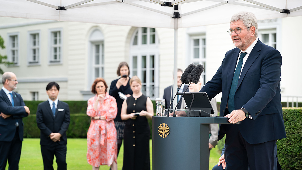 Bundespräsident Steinmeier zeichnete außerdem den japanischen Chemiker Keiichi Hirano mit dem Philipp Franz von Siebold-Preis 2025 aus für seine hervorragende wissenschaftliche Arbeit und besondere Verdienste um den deutsch-japanischen Austausch.