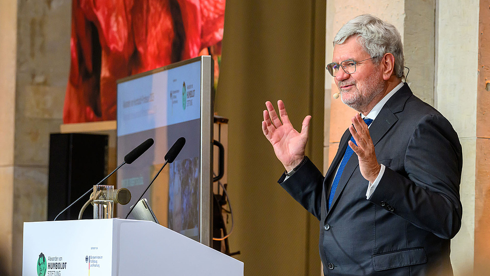 „In schwierigen Zeiten Forschende individuell zu unterstützen und Wissenschaftsfreiheit am Leben zu halten, um freie Forschung zu ermöglichen, das ist unser aller Aufgabe – in der Politik, in den Förderorganisationen und in den Universitäten und Forschungseinrichtungen.“ Denn dem Verlust der Freiheit in der Wissenschaft folge der Verlust der Freiheit in der Gesellschaft. Die Alexander von Humboldt-Professur schenke mit der Freiheit, ohne programmatische Fesseln forschen zu können, etwas, das aktuell „bedeutender sein mag als die höchste Fördersumme“.