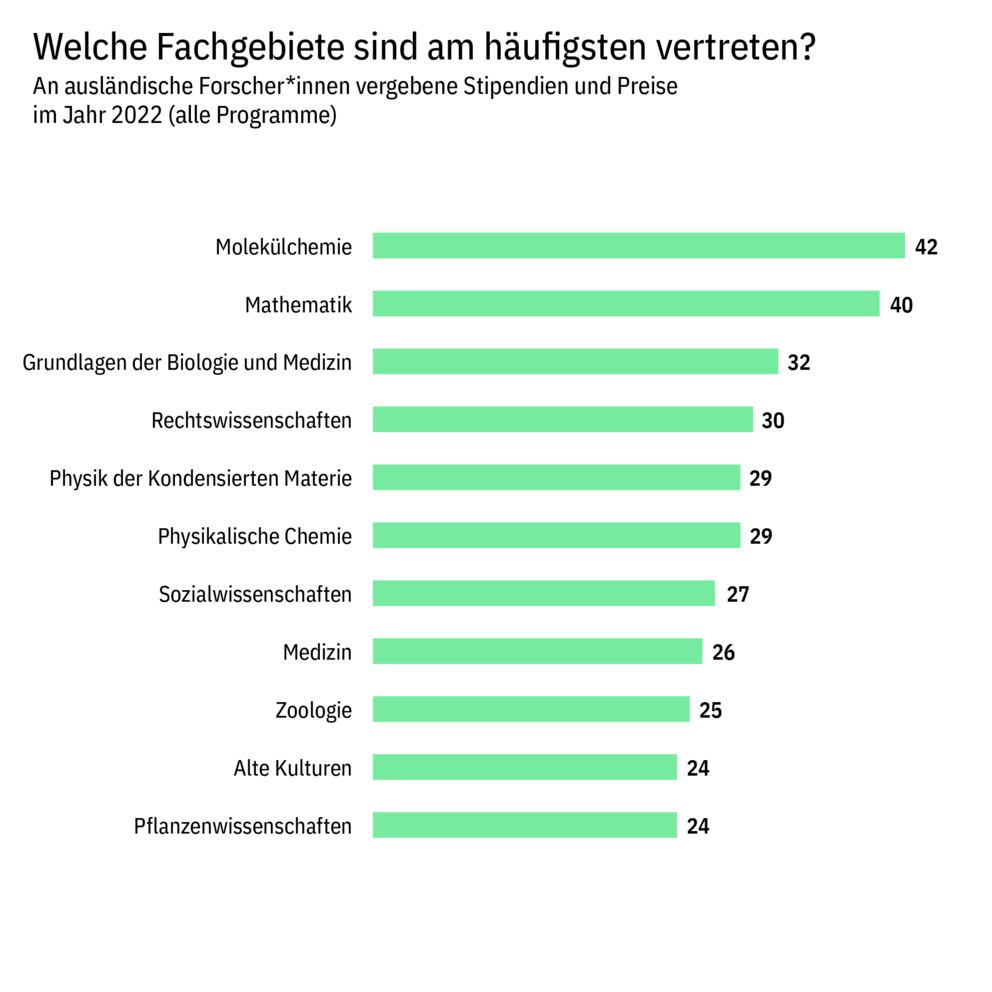 Im Bereich Forschungsstipendien waren dies 2022 insbesondere die Carl Friedrich von Siemens Stiftung sowie die Bayer Foundation, die Joachim Herz Stiftung und BASF. Die Stipendiat*innen durchlaufen den regulären, nach den üblichen Exzellenzkriterien der Alexander von Humboldt-Stiftung ausgerichteten Auswahlprozess. Neben dem Zugang zum weltweiten Humboldt-Netzwerk stehen ihnen darüber hinaus die Netzwerk-Angebote der jeweiligen Kooperationspartnerorganisationen offen. Die zusätzlichen Mittel werden auch zur Erhöhung der finanziellen Ausstattung der Stipendien genutzt. So war es der Humboldt-Stiftung 2022 wiederum möglich, allen Forschungsstipendiat*innen im Münchner Raum einen monatlichen Carl Friedrich von Siemens-Stipendienzuschlag zum Ausgleich höherer Lebenshaltungskosten zu gewähren.