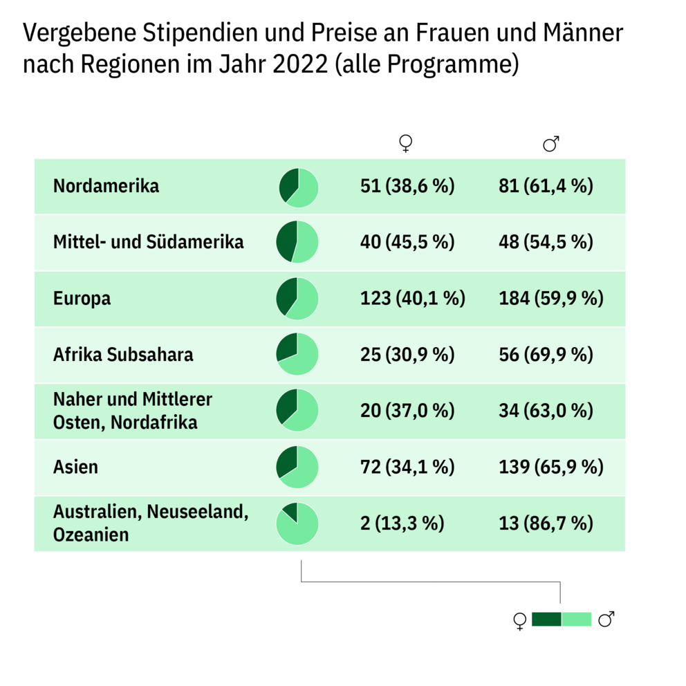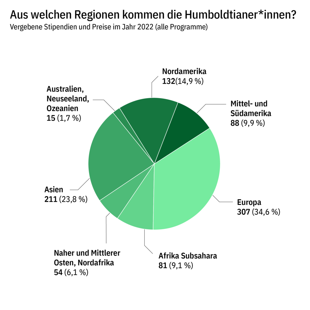 Als lebenslange Partnerin hält die Humboldt-Stiftung durch ihre Förderangebote für Alumni die Verbindung zu ihren Geförderten langfristig aufrecht. So kommen viele Humboldtianer*innen nach ihrem Erstaufenthalt zur Durchführung wissenschaftlicher Projekte nach Deutschland zurück. Erneute Forschungsaufenthalte fördern die Zusammenarbeit mit den für die deutsche Wissenschaft besonders interessanten und bereits etablierten Wissenschaftler*innen. Aufgrund der Coronasituation konnten auch 2022 noch nicht so viele erneute Forschungsaufenthalte realisiert werden als in den Jahren vor der Pandemie, aber deutlich mehr als 2021. So kamen insgesamt 383 (2021: 241 | 2020: 152) Humboldtianer*innen im Rahmen dieser Alumniförderung nach Deutschland bzw. kooperierten bei fortdauernden Reisebeschränkungen virtuell aus dem Heimatland mit Ihren Fachkolleg*innen in Deutschland.