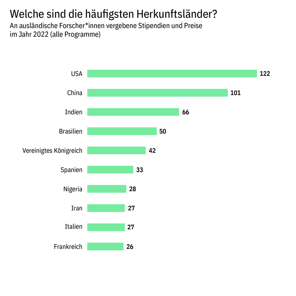 2022 hat die Alexander von Humboldt-Stiftung mehr als 2.300 Forschungskooperationen zwischen ausländischen und deutschen Forschenden gefördert. 1.994 Wissenschaftler*innen aus dem Ausland kamen im Berichtsjahr zur erstmaligen Stipendienförderung nach Deutschland. Auf Wunsch der Forschungsstipendiat*innen gewährt die Humboldt-Stiftung Sprachstipendien für den Besuch von Deutschkursen. 317 Personen (270 Forschungsstipendiat*innen und 47 Ehepartner*innen) haben im Jahr 2022 an Deutsch-Intensivkursen vor Beginn ihrer Forschungsaufenthalte teilgenommen – davon 66 an Online-Deutschkursen. Für begleitende Sprachkurse während des Forschungsaufenthalts vergab die Humboldt-Stiftung zusätzlich 275 Beihilfen in Höhe von rund 111.000 Euro.