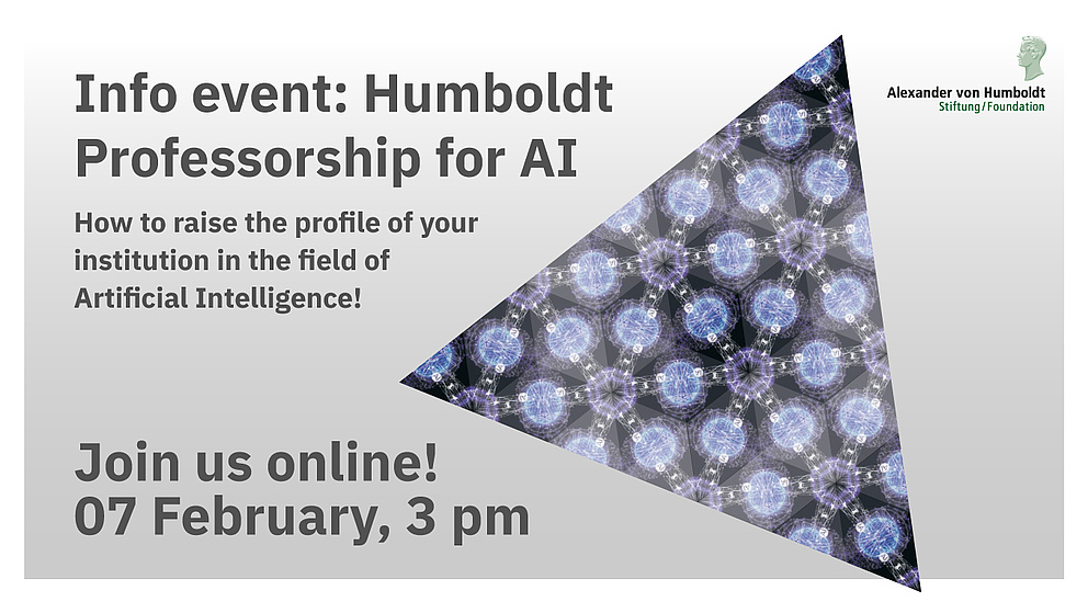 Als zukunftsweisender KI-Standort steht Ihre Institution schon gut da? Oder möchten Sie den Fachbereich Künstliche Intelligenz noch sichtbarer machen? Zum Beispiel, indem Sie ganz bestimmte Forschungs- oder Anwendungsgebiete der KI noch weiter auszubauen? Nutzen Sie die Chancen der Alexander von Humboldt-Professur für Künstliche Intelligenz und nehmen Sie Kontakt mit geeigneten Spitzenkräften im Ausland auf, um diese mit dem höchstdotierten Forschungspreis Deutschlands für Ihre Institution zu gewinnen. Die Zeit läuft! 2024 wird die Alexander von Humboldt-Stiftung voraussichtlich die letzten Alexander von Humboldt-Professuren für KI im Rahmen der nationalen Strategie der Bundesregierung verleihen.